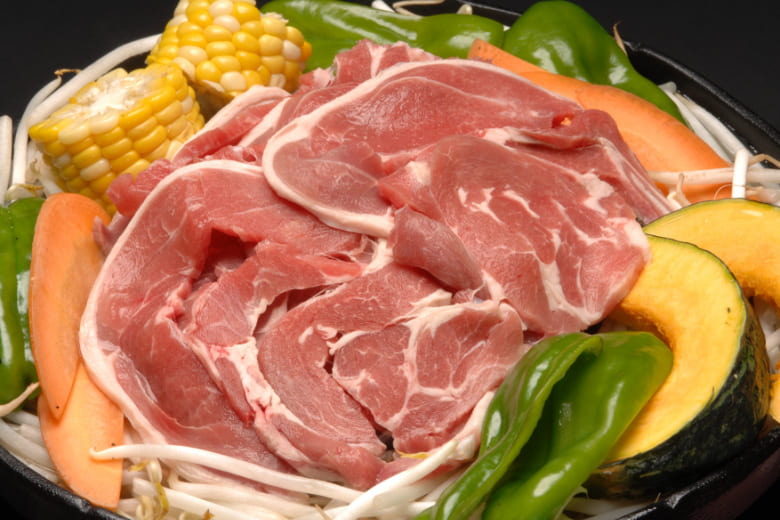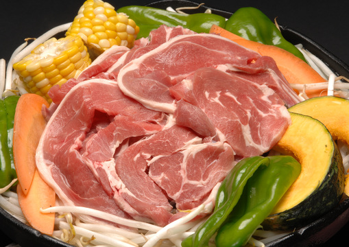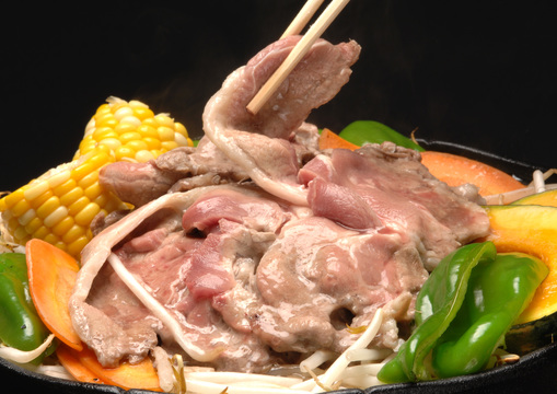 ?次にジンギスカンを中心にのせて野菜、肉ともに焼けましたら特製のタレに付けてお召し上がりください(焼きすぎに注意して下さい)