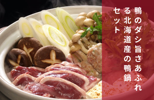 北海道滝川市名産の合鴨を、心も身体も芯から暖める鍋セットにしました。